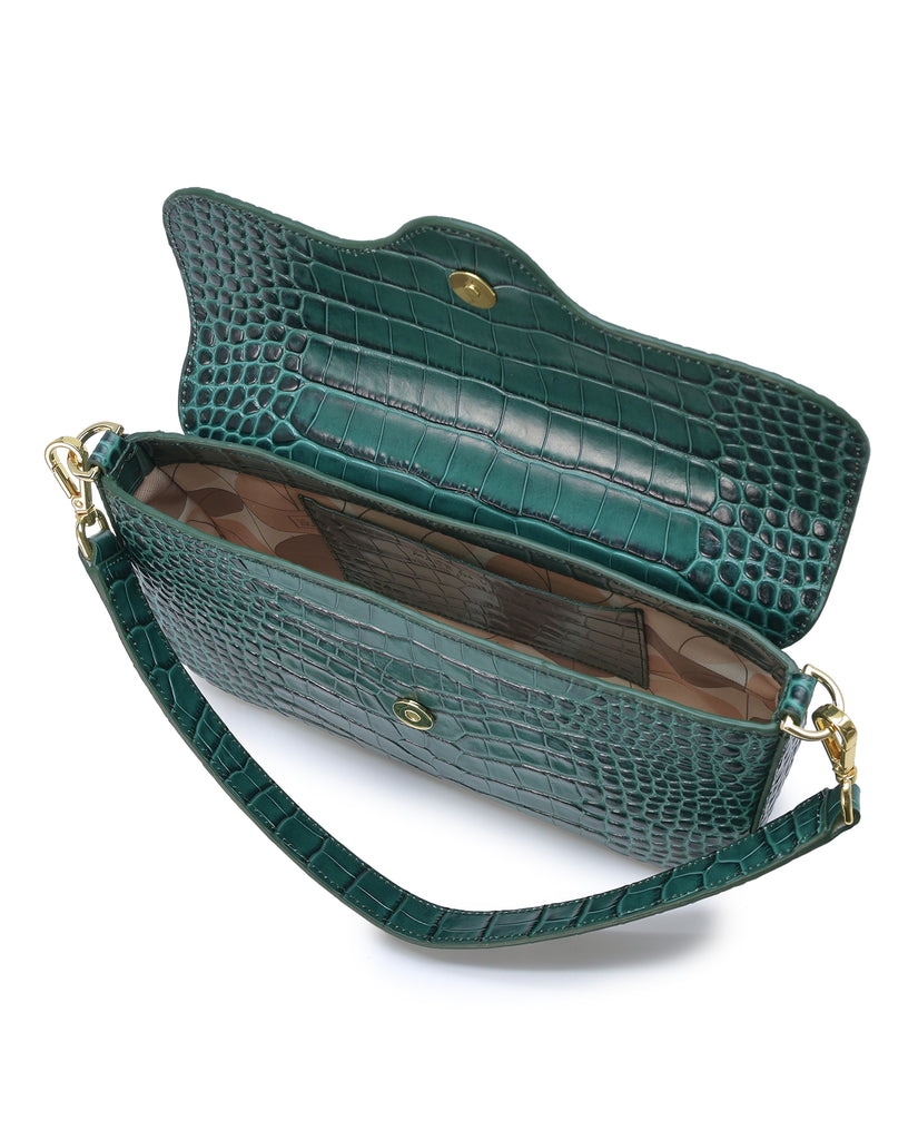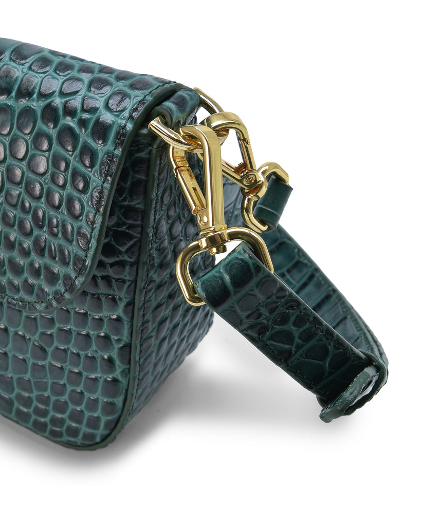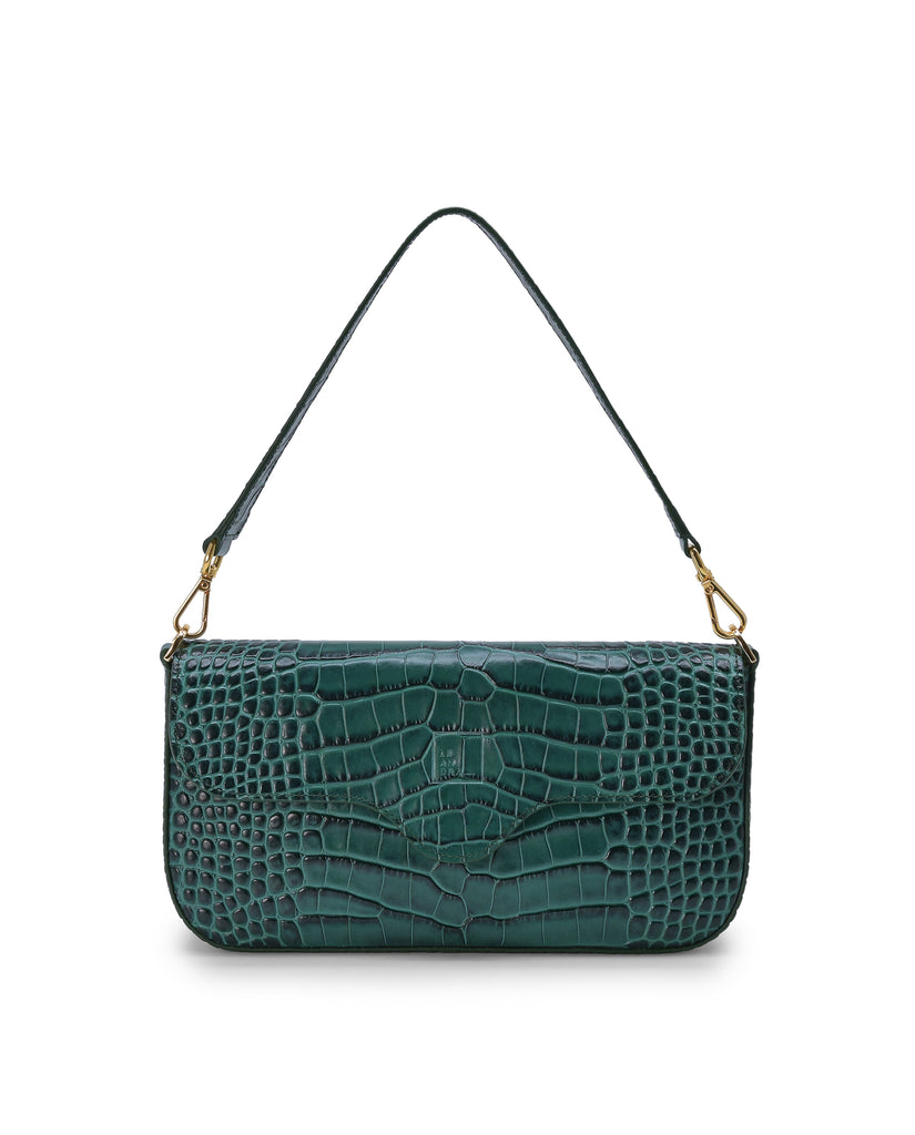 Bolso baguette de piel grabada en coco color verde Leandra.
