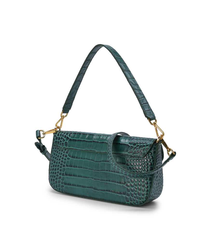 Bolso baguette de piel grabada en coco color verde Leandra