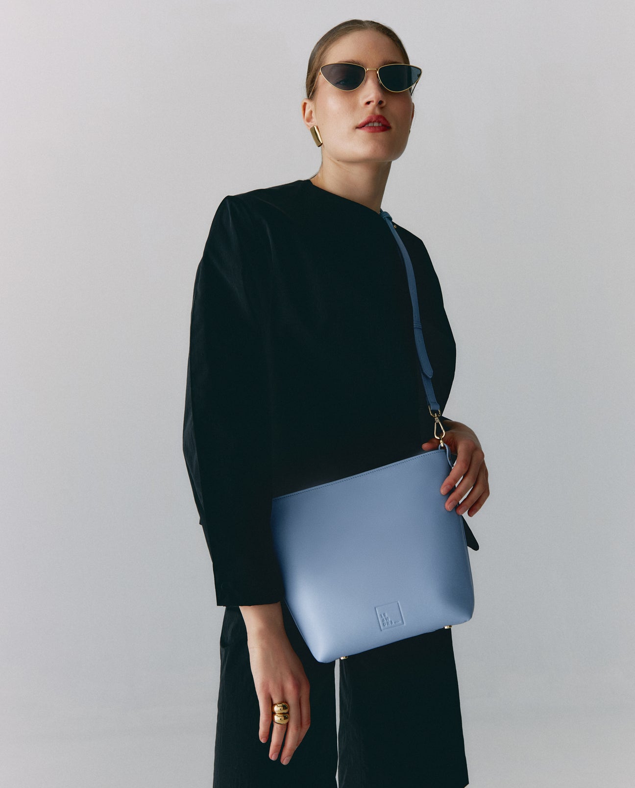 Shoulder bagleather tote bag type in colorbluewith zipper made ofUbrique, Spain. Removable short strap and removable and adjustable long crossbody strap with cufflinks, matching hardware, zipper closure, and brand logo.Women's tote bagwith retro embossed textile lining and inside pocket. Discover thetote bagsLeather products made in Ubrique Leandra at leandrabrand.com