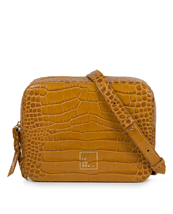Multiposition moon shoulder bag in mustard leather Leandra.