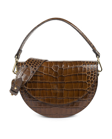 Saddle Bag de piel grabada en coco color chocolate Leandra.