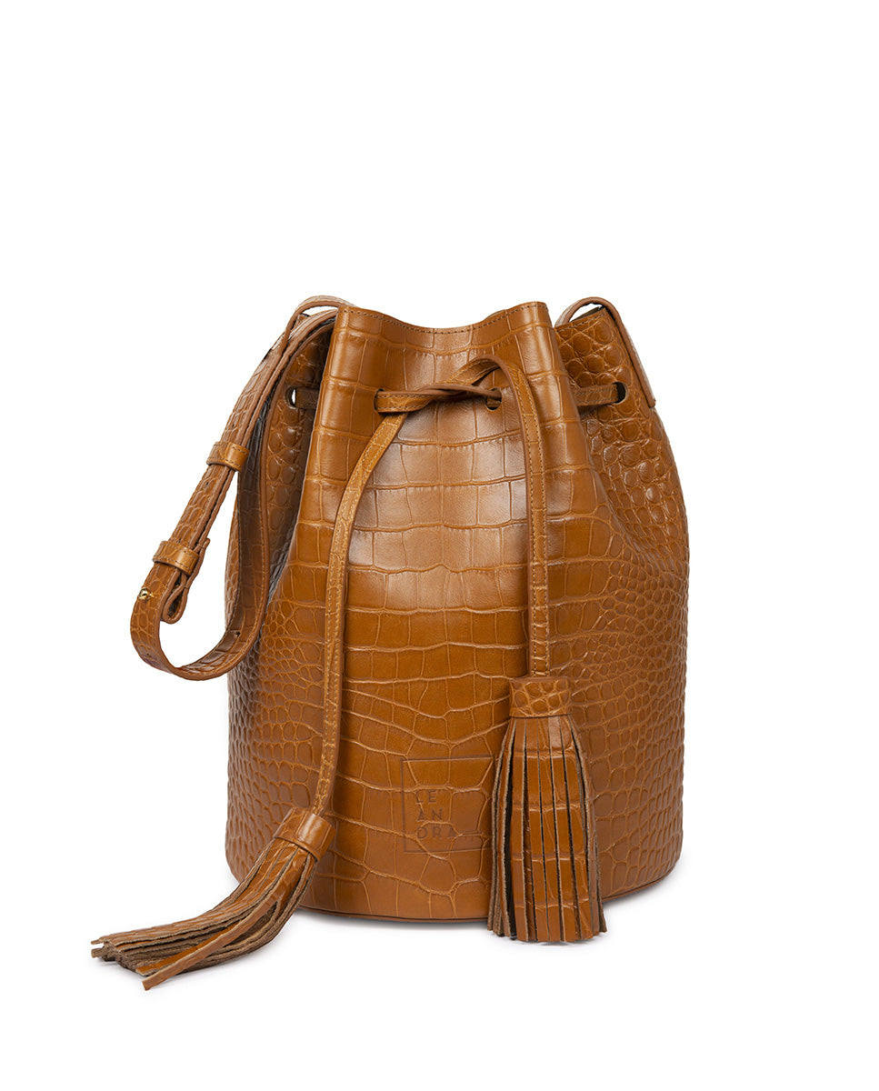 Bucket bag embossed in caramel brown soft coconut Leandra