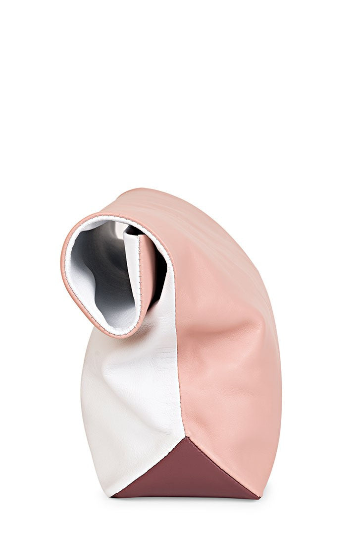 Paper Bag type tricolor leather bag in pink, white and brown with removable pocket Leandra