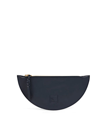 Cartera de mujer de piel con forma de media luna y cremallera color azul Leandra.